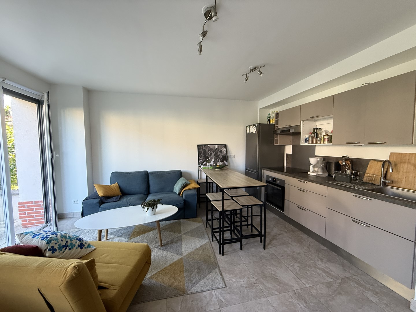 Dans résidence de standing récente, agréable et fonctionnel, appartement en rez de jardin clos comprenant entrée avec placard de rangement, grande pièce de vie lumineuse donnant sur terrasse et jardin avec cuisine ouverte aménagée et équipée (hotte et plaque de cuisson, frigo-congélateur), dégagement avec rangements desservant salle de douche avec wc, chambre rangements. Parking privatif aérien pour un véhicule. Chauffage individuel gaz de ville. Conditions de location encadrées par la Loi PINEL.
