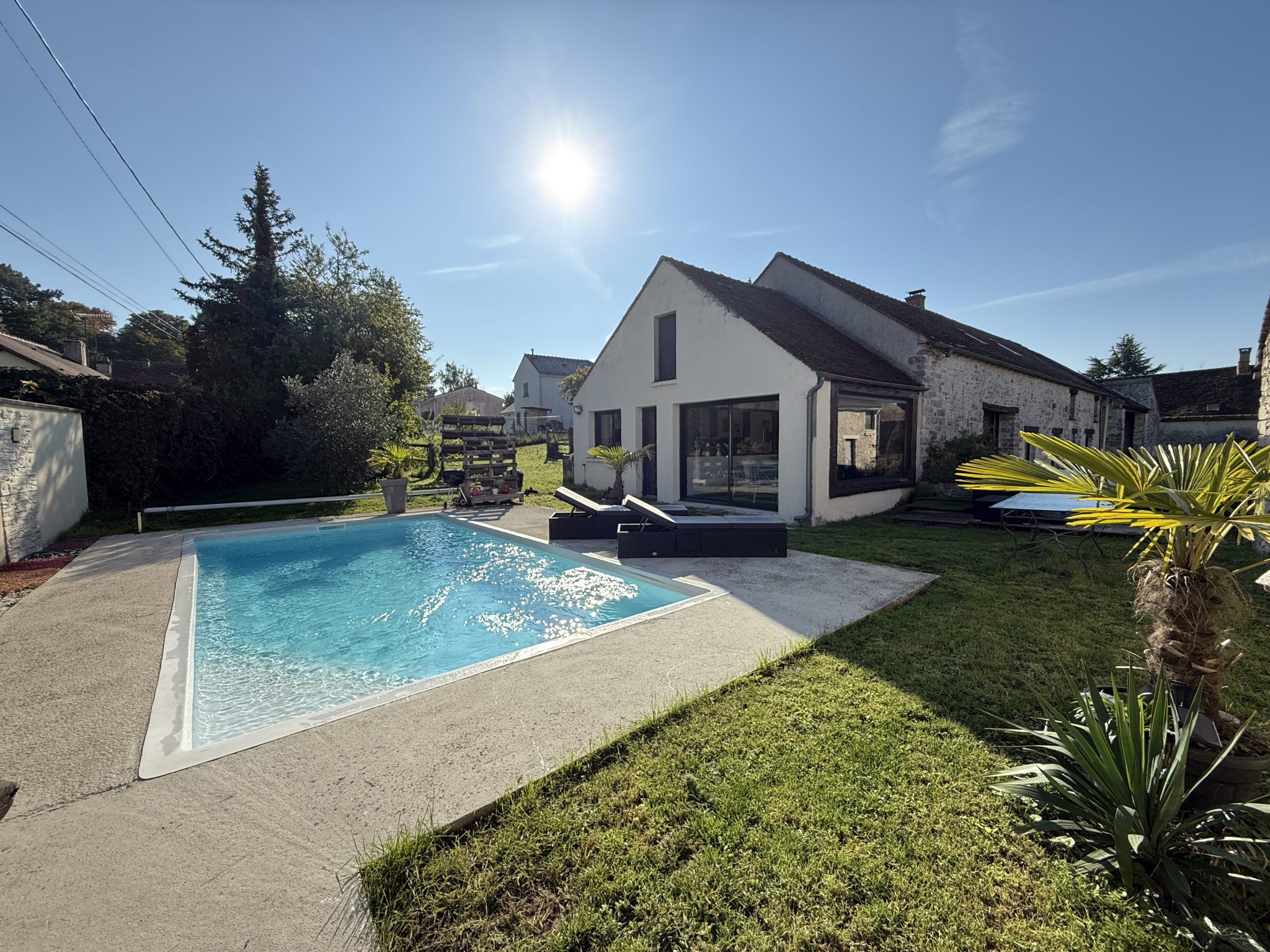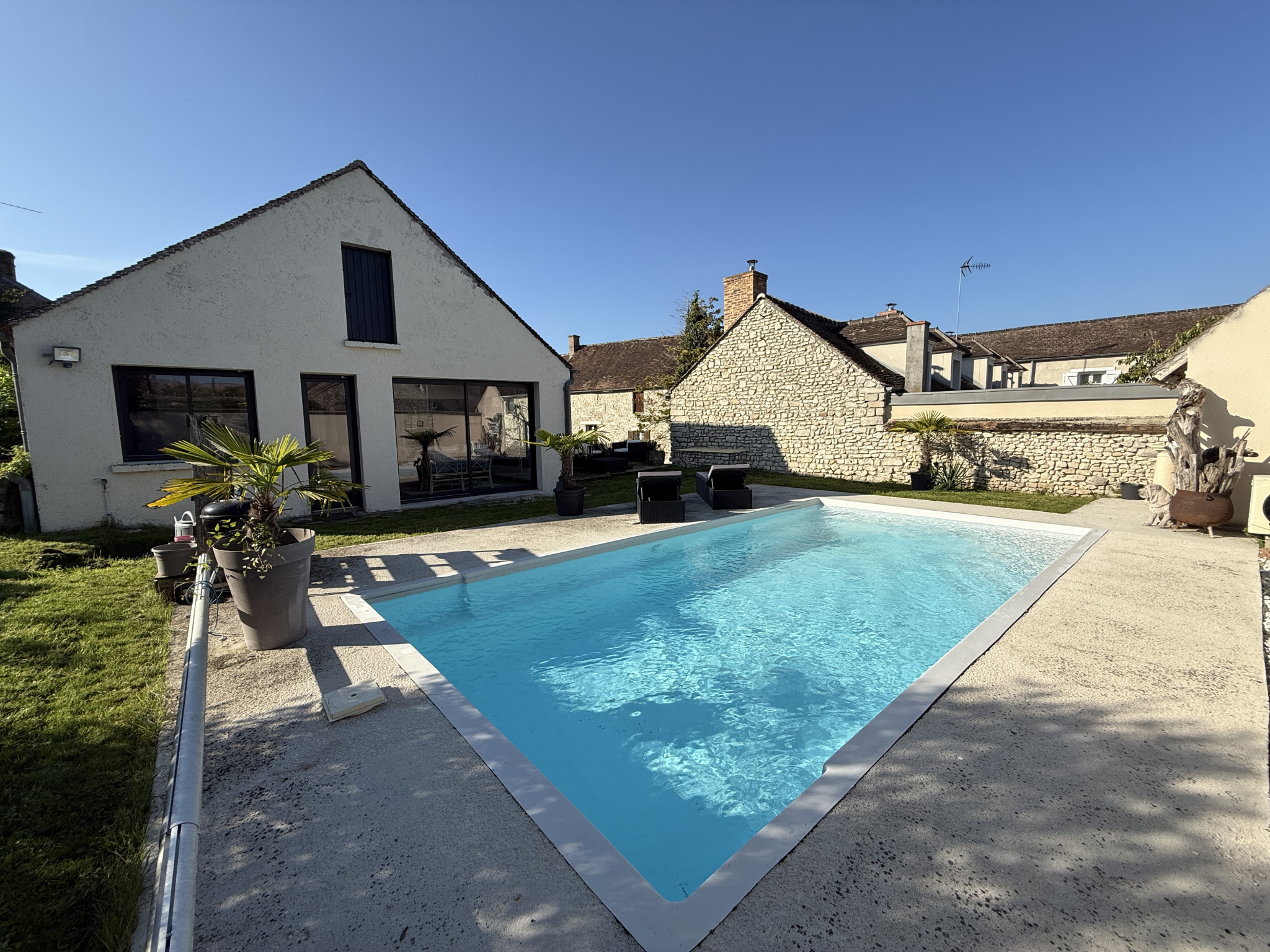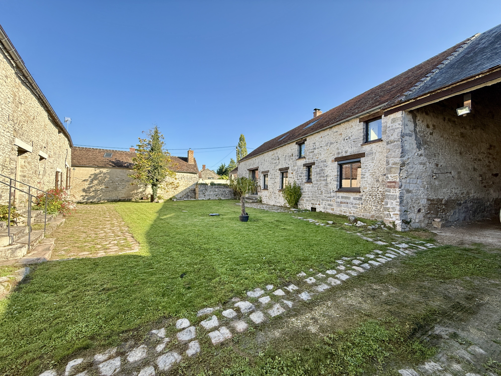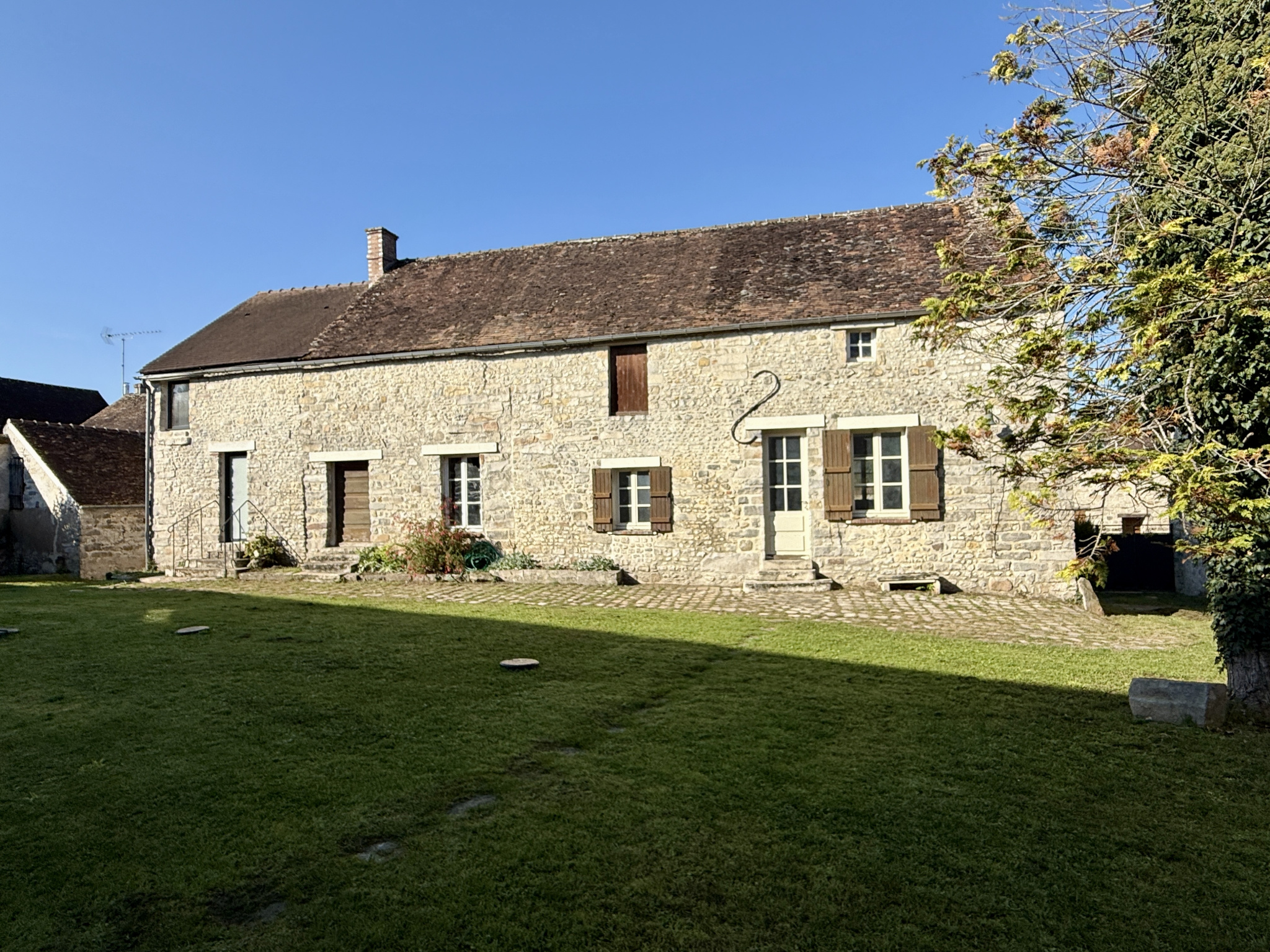 Au sein d'un charmant village situé à 15 minutes de Fontainebleau, belle propriété composée d'une maison principale en pierre, entre cour et jardin développant 235m² sur deux niveaux. Elle bénéficie au rez de chaussée de belles pièces à vivre très lumineuses, un espace salon cosy avec un insert, un salon télévision, une salle à manger et une cuisine équipée séparée par une verrière et donnant sur une terrasse en bois. Au rez de chaussée se trouve aussi un couloir desservant une chambre, une salle de bain avec WC et des toilettes indépendants. A l'étage, une grande pièces palière dessert trois chambres et 2 salles d'eau avec WC. En annexe, un second bâtiment en pierre face à la maison, en cours d'aménagement permet de créer des bureaux ou logements annexes. Piscine chauffée à l'abri des regards. Accès autoroute A6 à 5 minutes. Terrain clos partagé entre cour et jardin.