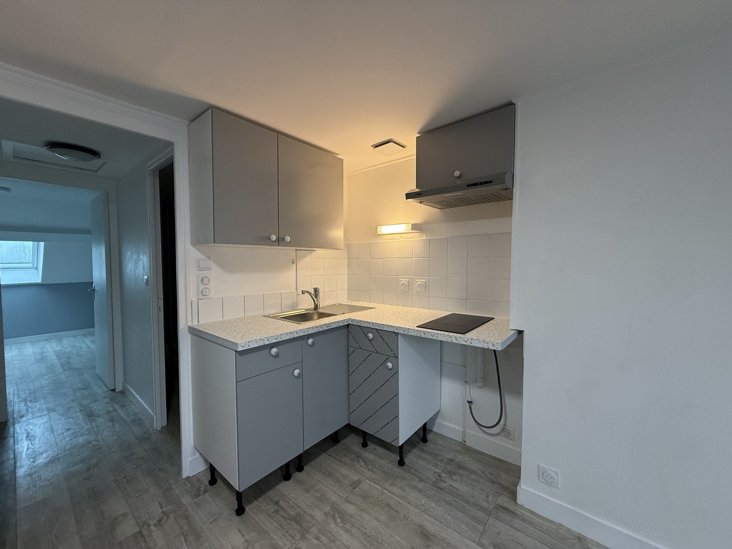 En coeur de ville, dans un petit immeuble, charmant logement mansardé situé au 3ème et dernier étage comprenant: une pièce de vie avec coin cuisine aménagée et équipée, dégagement, salle de douches avec wc, une chambre. Chauffage individuel électrique. (surface au sol 33,09m²). Proche tous commerces.