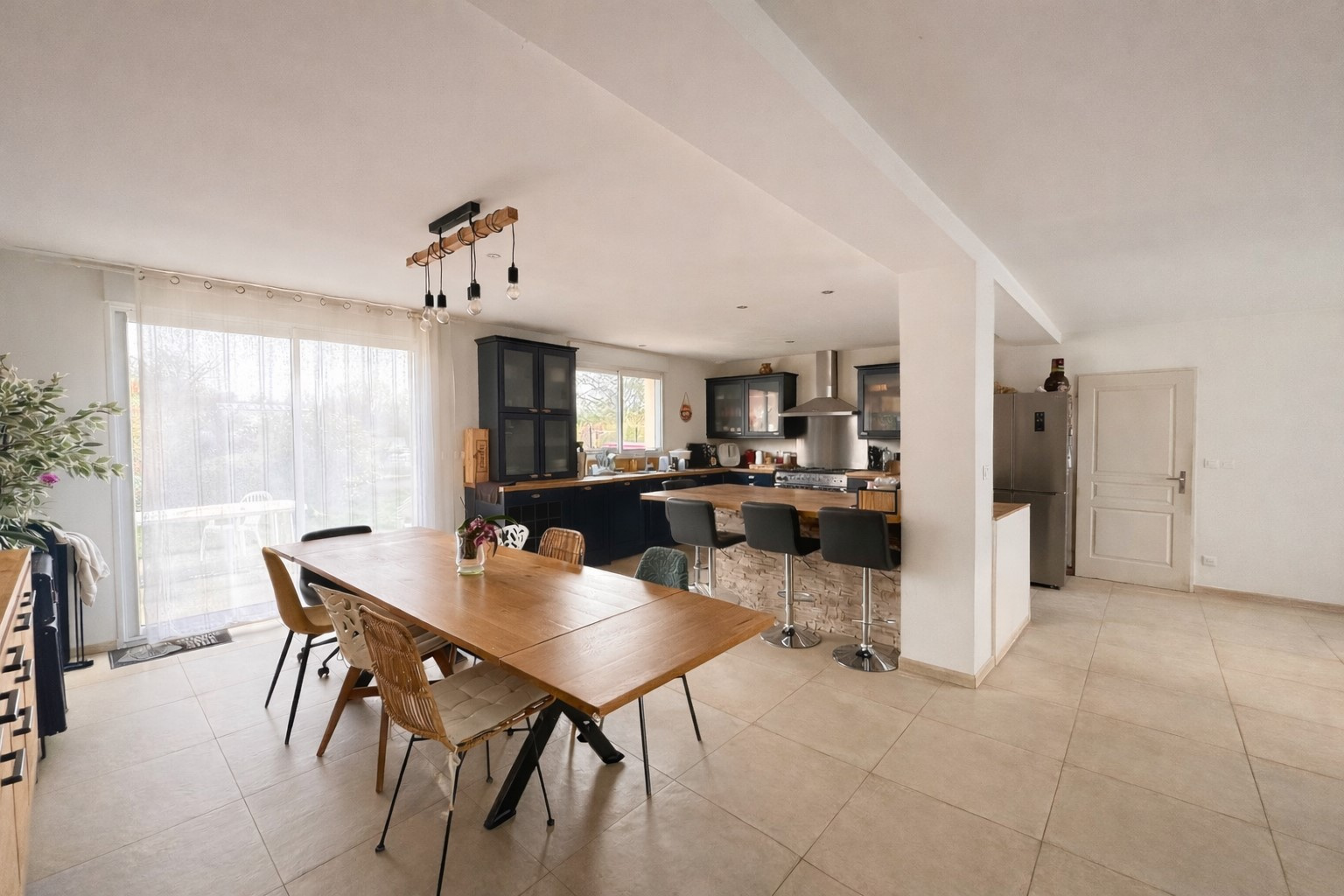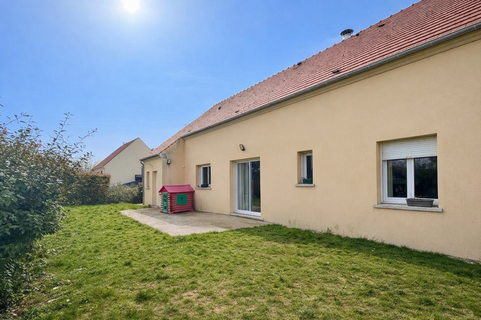 Agréable maison individuelle de plain-pied et fonctionnelle. Elle se compose d’une entrée, d’un spacieux séjour d’environ 60 m² avec cuisine ouverte aménagée et équipée, offrant un bel espace de vie convivial et très lumineux, 2 chambres, salle de bains avec baignoire + douche à l'italienne. Toilettes indépendants. À l’extérieur, vous profiterez d’un terrain d'environ 750 m², d’une terrasse idéale pour les beaux jours, ainsi que d’un garage. Maison confortable, idéale pour un couple ou une petite famille, située dans un environnement agréable. Libre Juin 2026