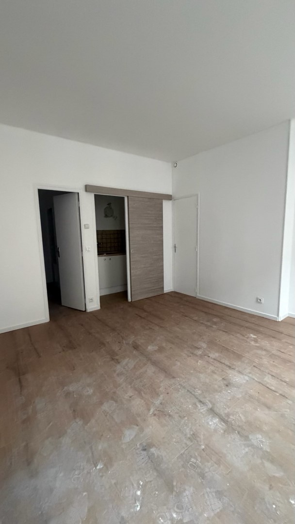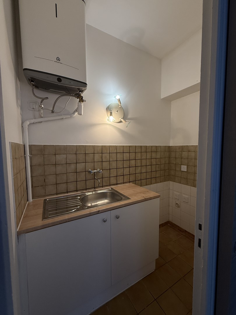 Appartement situé au rez-de-chaussée : Pièce de vie avec partie cuisine, salle d'eau wc, une pièce (aveugle) pouvant servir de chambre ou bureau. Libre.