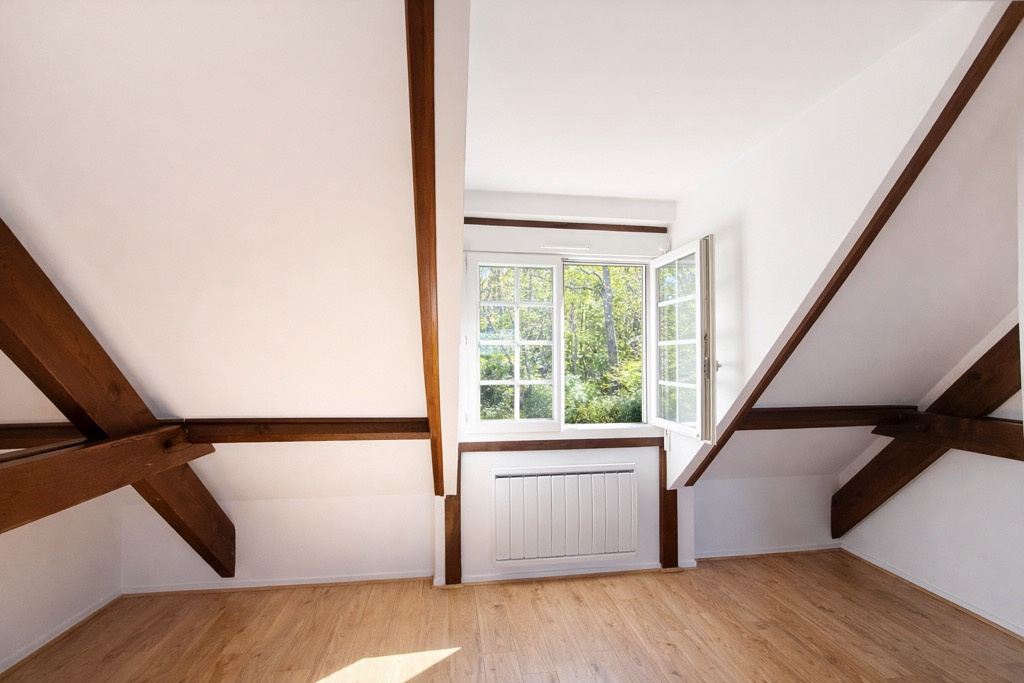 Situé dans une petite copropriété issue d’une maison de caractère, cet agréable appartement de 3 pièces en excellent état séduit immédiatement par son atmosphère chaleureuse, ses poutres apparentes et sa belle luminosité. Cette grande pièce de vie, conviviale, s’ouvre sur une cuisine aménagée et équipée. L’espace nuit propose deux chambres confortables avec placards de rangement, idéales pour un couple, une petite famille ou un espace de télétravail. Vous profiterez d’un cadre de vie paisible avec une vue dégagée sur la verdure, tout en étant à proximité immédiate des commerces, des bus par un passage piéton situé à deux pas. Une place de parking privative extérieure, une cave et un local vélos complètent ce bien. Surface : 76,88 m² au sol (58,80 m² loi Carrez)